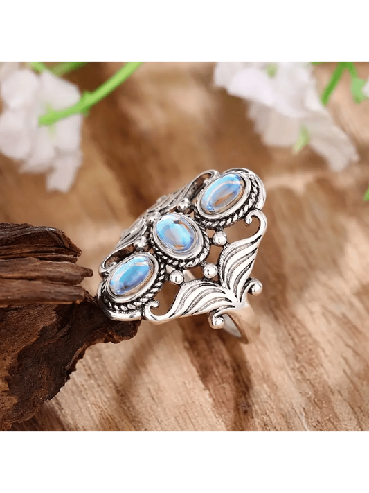 Elegant Boho Egg-Shaped Gemstone Ring - A Silver-Plated Touch of Beauty for Every Occasion