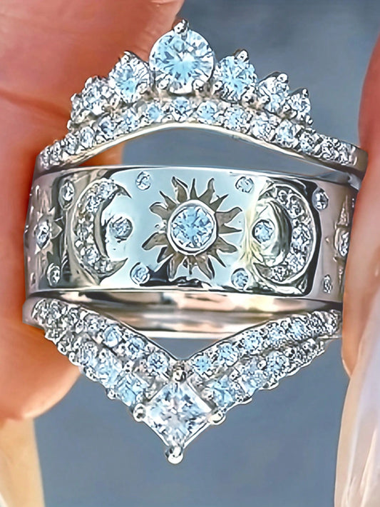 Radiant Celestial Ring Set: 3-Piece Luxury Star, Moon & Crown Design with Sparkling Cubic Zirconia