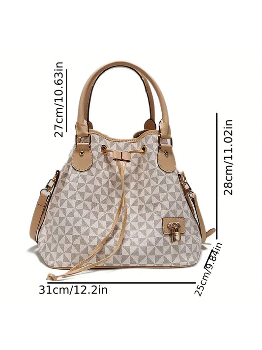 Chic Argyle Drawstring Bucket Handbag - Versatile Crossbody with Spacious Design