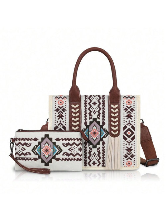 Boho Chic Vintage Tote Bag - Versatile Travel Handbag with Adjustable Strap & Clutch Pouch