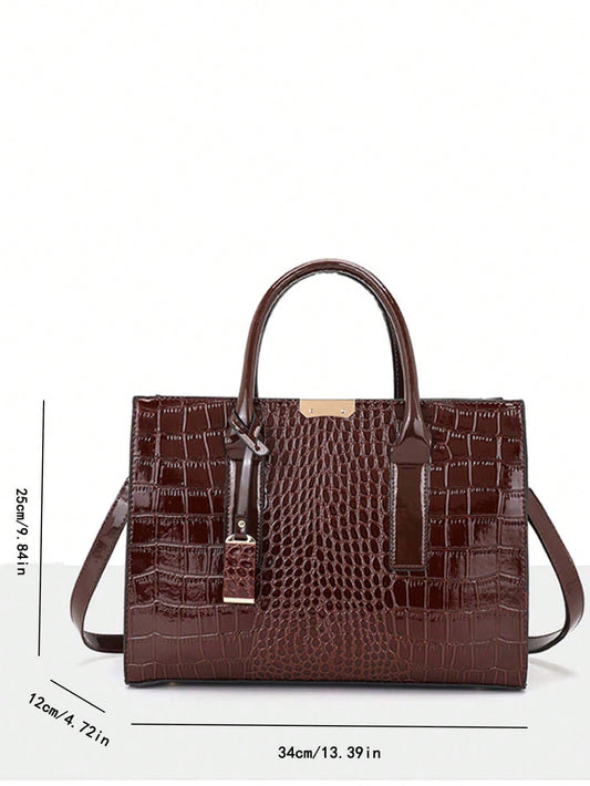 Chic Crocodile-Patterned Large Tote Bag with Stylish Accessories