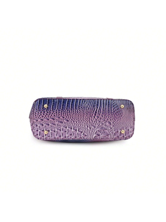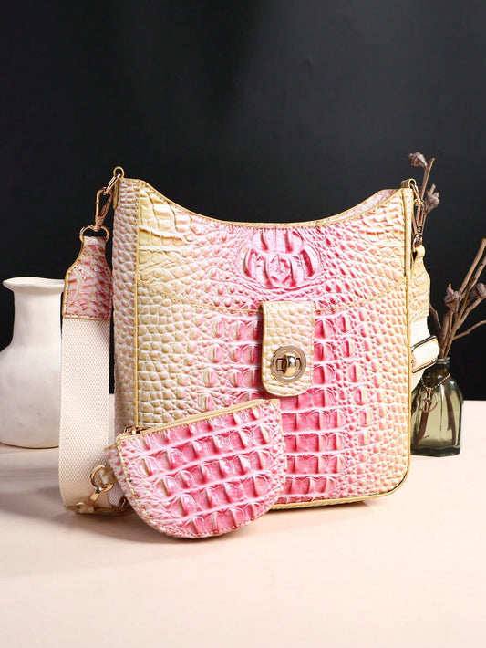 Chic & Sustainable: Vegan Leather Crocodile-Embossed Gradient Tote Set