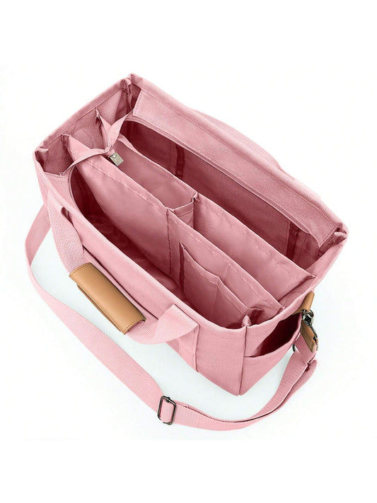 Chic Canvas Tote Bag with Pockets: Stylish Crossbody Shoulder Purse for Work and Travel