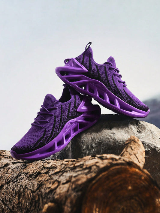 Men's Shock-Absorbing Blade Design Running Sneakers - Breathable Knit Performance Shoes
