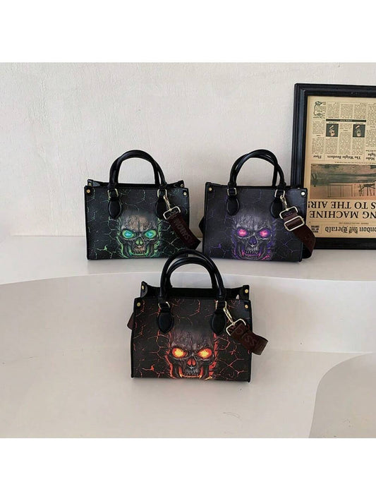 Gothic Skull Print Halloween Tote Bag - Stylish & Spacious Shoulder Bag with Zipper Closure