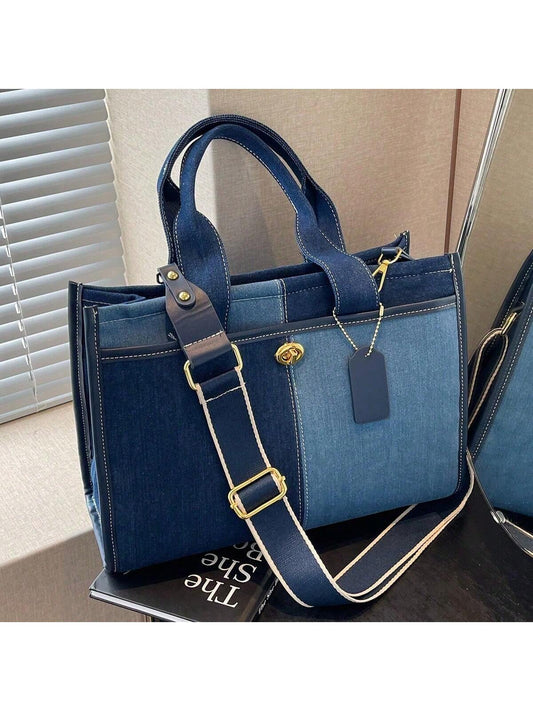 Casual Elegant Contrast Color Canvas Tote Bag For Women With Wide Strap