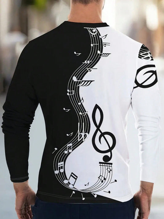 Men's Casual Musical Note Print Long Sleeve T-Shirt - Versatile Style for Spring & Autumn