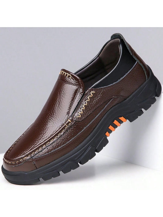 Classic Elegance: Premium Leather Slip-On Loafers for Men with Non-Slip Rubber Sole