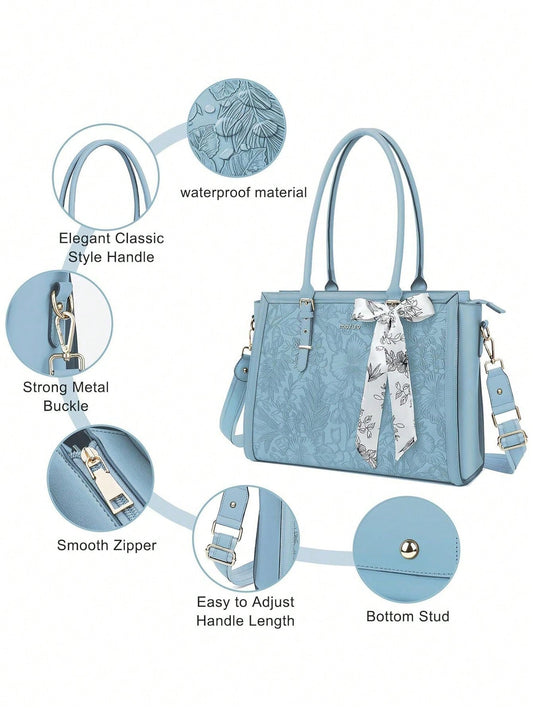 Chic Retro Hibiscus Laptop Tote Bag for Women โ Stylish & Functional PU Leather with Silk Scarf