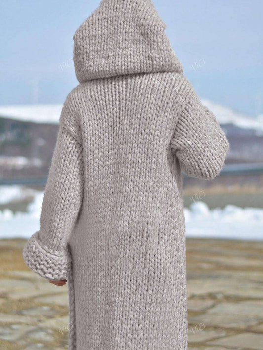 Cozy Up in Style: Casual Solid Color Thick Knit Hooded Long Cardigan for Autumn & Winter