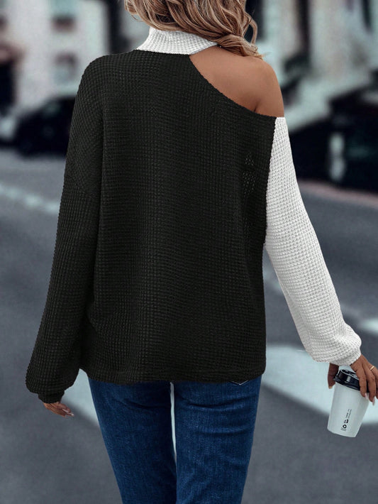 Autumn Chic: Colorblock Off-Shoulder Graphic Tee for Women