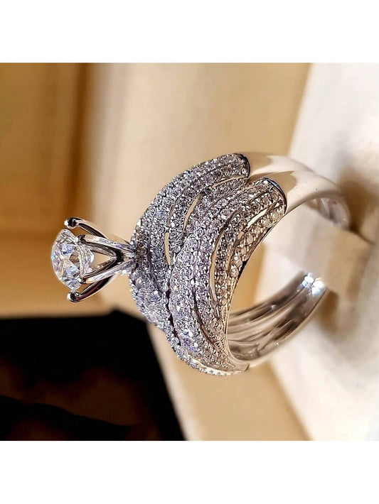 Elegant Geometric Glitter Ring Set for Women - Luxury Wedding and Engagement