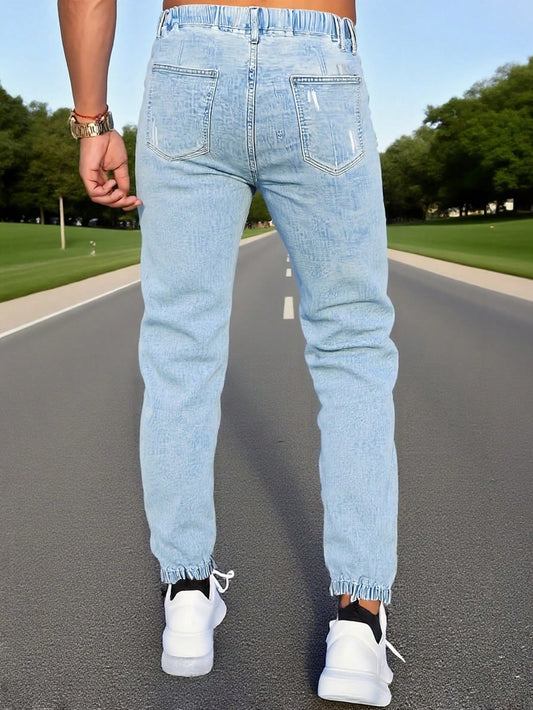 Light Wash Blue Cuffed Jeans - Relaxed Fit & Versatile Ankle Cuff Design for Effortless Style