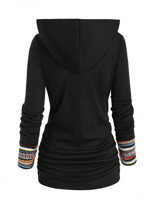 Stylish Women's Patchwork Pleated Button T-Shirt – Trendy Graphic Tee for Effortless Chic