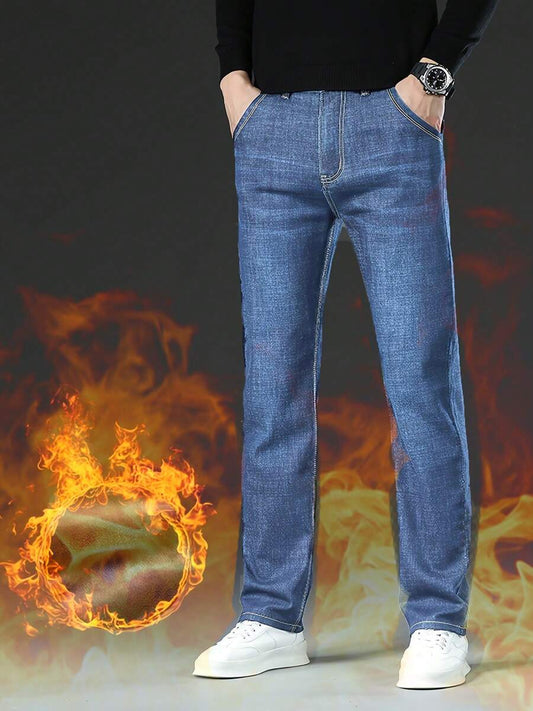 Men's Thick Fleece-Lined Winter Jeans - Classic Blue Straight Leg Design for Ultimate Comfort and Style