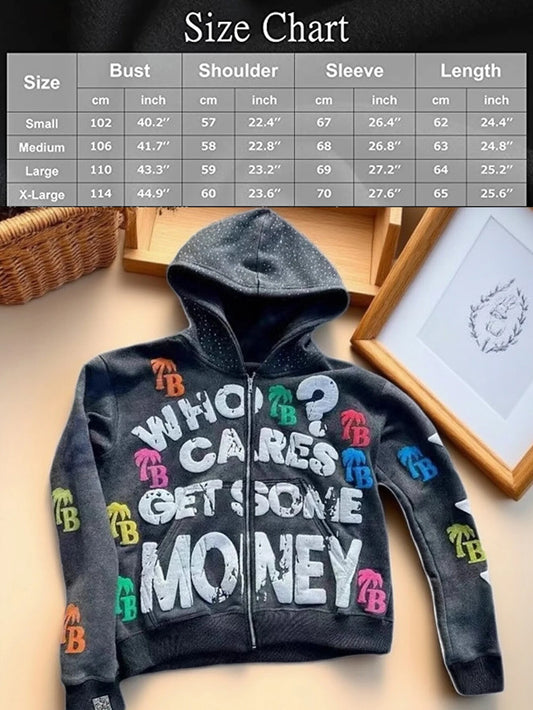 Men Letter Embroidery Hoodies Gothic Graphic Sweatshirt Overszie Y2K Hip Hop Streetwear with Zip Up