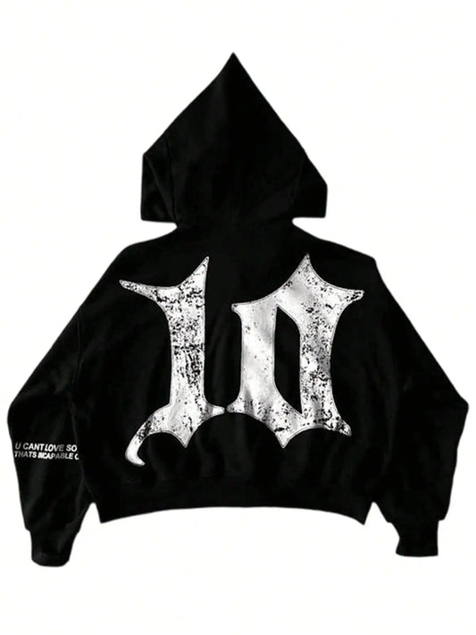 Men Gothic Hoodies Vintage Washing Letter Printed Hoodie Sweatshirt Casual Oversized Long Sleeve Streetwear Hooded Pullover