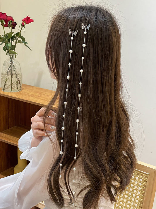 Elegant Faux Pearl Hair Clips - 2pcs Decorative Head Jewelry for Stylish Hairdos