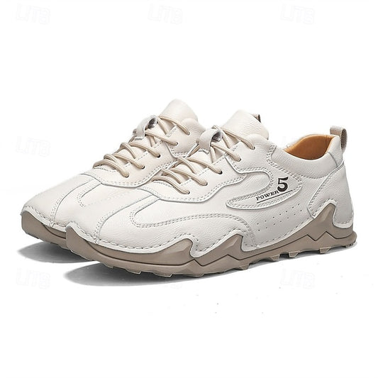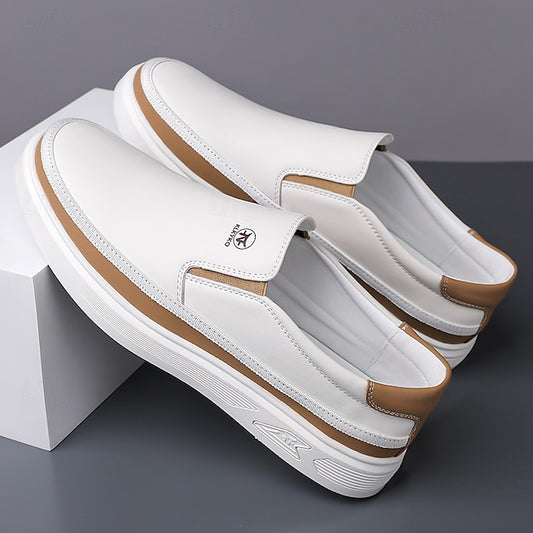 Comfortable Men's Black and White PU Leather Sneakers - Breathable, Slip-Resistant Casual Loafers for Walking