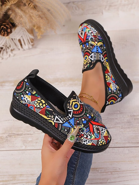 Stylish Women's Slip-On Comfort Shoes with Geometric Plaid Wedge - Perfect for Daily Wear and Mother's Day Gift
