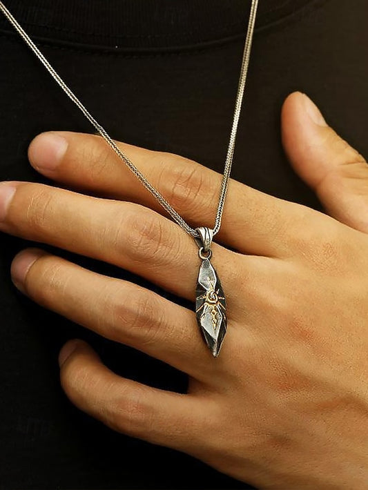 Artistic Retro Teardrop Pendant Necklace for Men & Unisex in Silver and Black Alloy - Bohemian Fashion Accessory