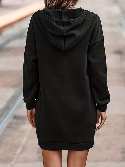 Casual Women's Hoodie Dress – Trendy Mini Shift Dress for Spring, Fall & Winter in Black, White, Pink & Wine