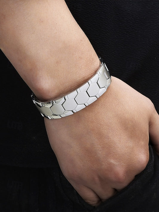 Stylish Men's Magnetic Bracelet in Silver and Black Stainless Steel - Punk Fashion Accessory