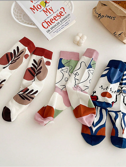 Colorful Face Line Pattern Mid-Calf Socks for Men - 5 Pairs Set