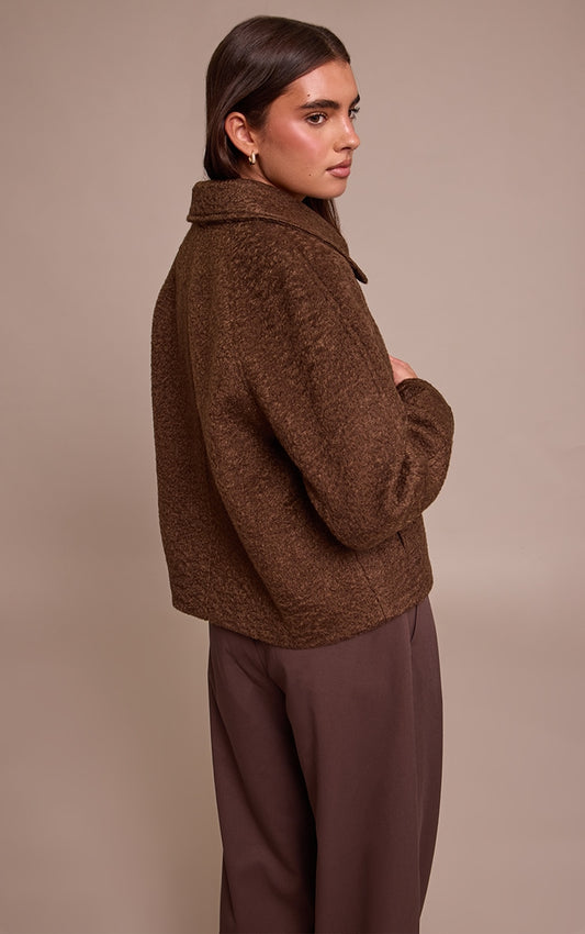Chic Chocolate Boucle Zip-Up Jacket for Effortless Style