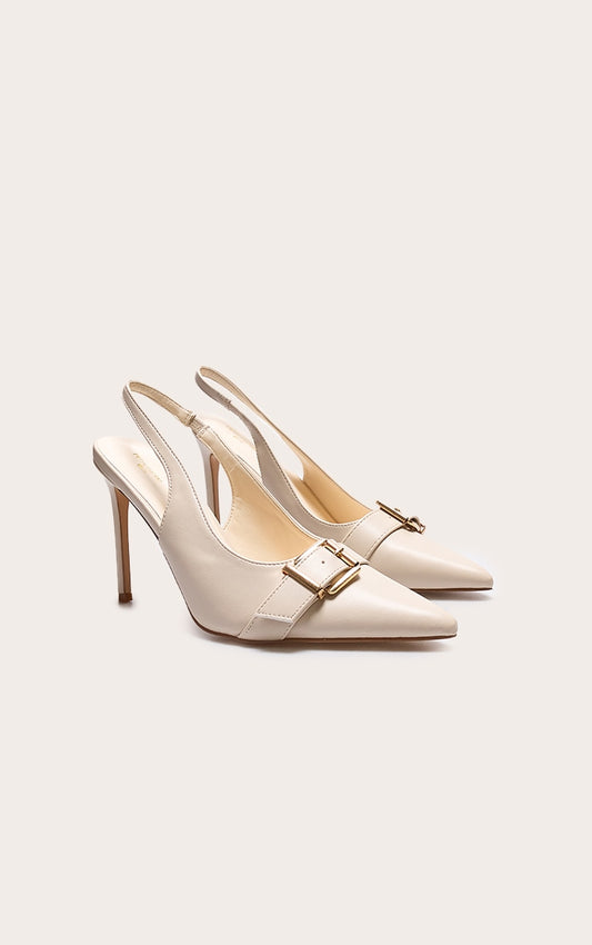 Cream PU Wide Fit Stiletto Slingback Heels with Buckle Detail - Stylish Court Footwear for Every Occasion