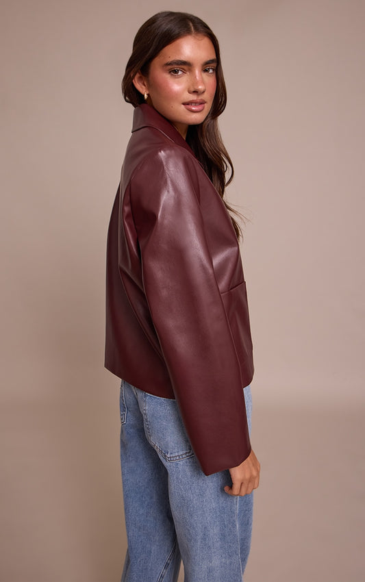 Chic Burgundy PU Button-Up Jacket for Effortless Style