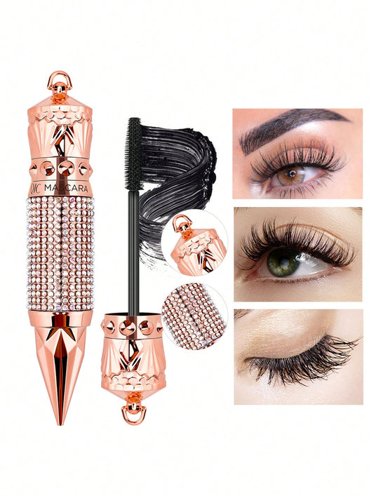 QIC 4D Silk Fiber Mascara: Waterproof & Smudge-Proof for Natural, Thick, and Curled Lashes with Rhinestone Shell Design
