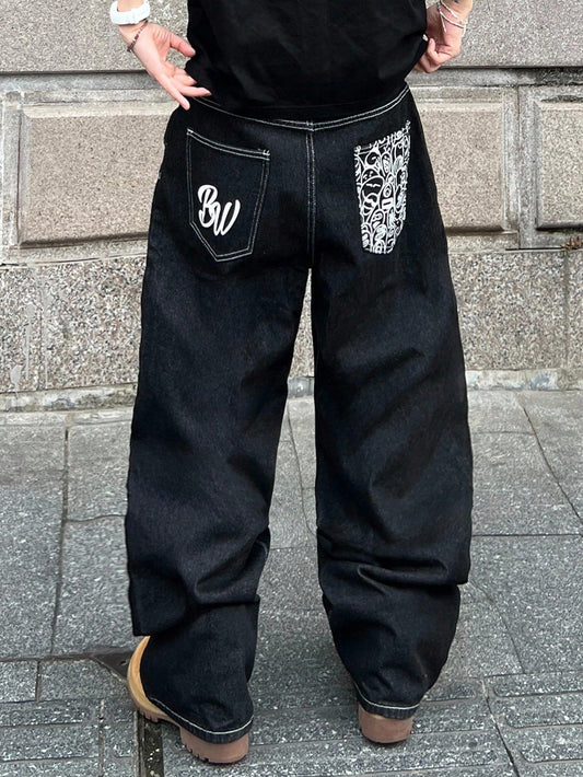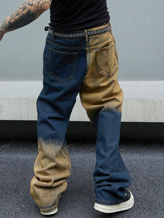 Streetrush Men's Jacquard Straight Leg Flare Wide Leg Jeans for Trendy Urban Style