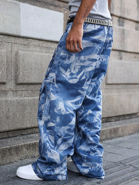 PAVTROS Men's Street Style Tie-Dye Multi-Pocket Loose Fit Pants - Versatile Vintage Trousers for Everyday Chic