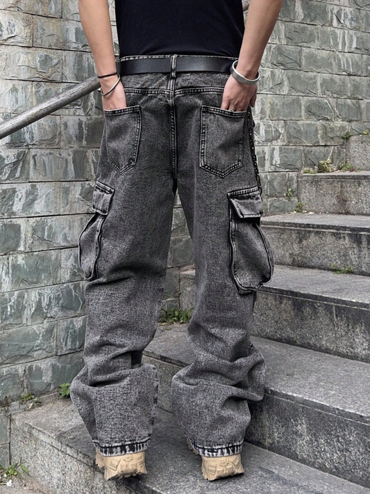 PAVTROS Manfinity Plus Size Street Style Cargo Jeans for Men - Relaxed Fit with Pockets for Urban Adventures and Vacations