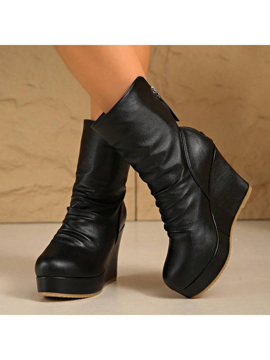 Stylish Women's Mid-Calf Boots with Flat Wedge Heel for Autumn & Winter Comfort