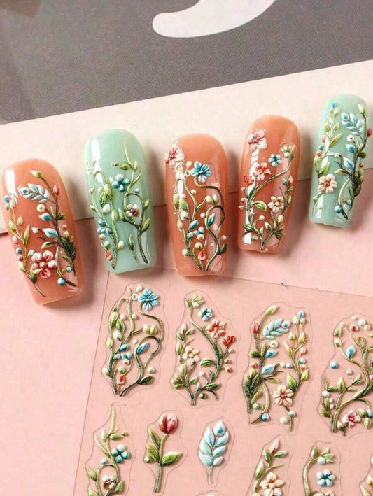 Charming 5D Embossed Green Vine Leaf Nail Art Stickers - Perfect for Floral Wedding Designs and DIY Nail Decor