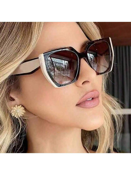 Trendy Women's Retro Cat Eye Color Block Sunglasses - Perfect for Summer Beach Days and Fashionable Outings