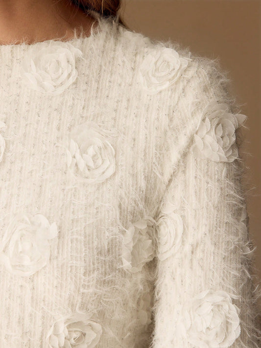 MOTF Premium Fluffy Knit Slim Fit Tee with Unique Appliqué Details