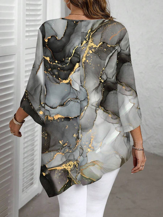 Plus Size Casual Ink Marble Pattern Long Sleeve Shirt for Spring and Autumn
