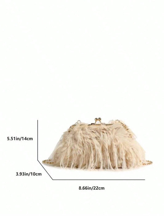 Chic Khaki Flap Chain Plush Handbag - Stylish Crossbody Shoulder Bag for Daily Office and Casual Use