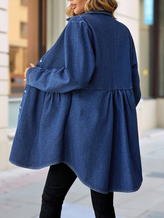 Chic Plus Size Drawstring Hooded Denim Jacket for Autumn and Winter Casual Outfits