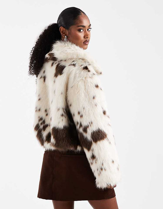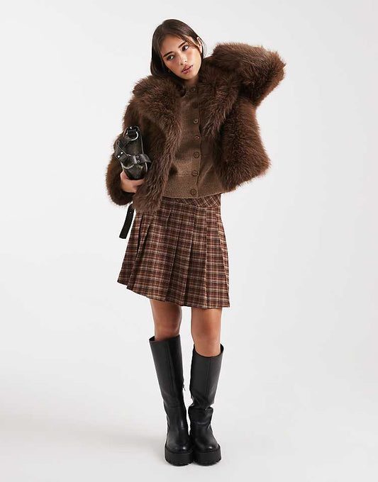 Chic Chocolate Faux Fur Crop Jacket for Effortless Style