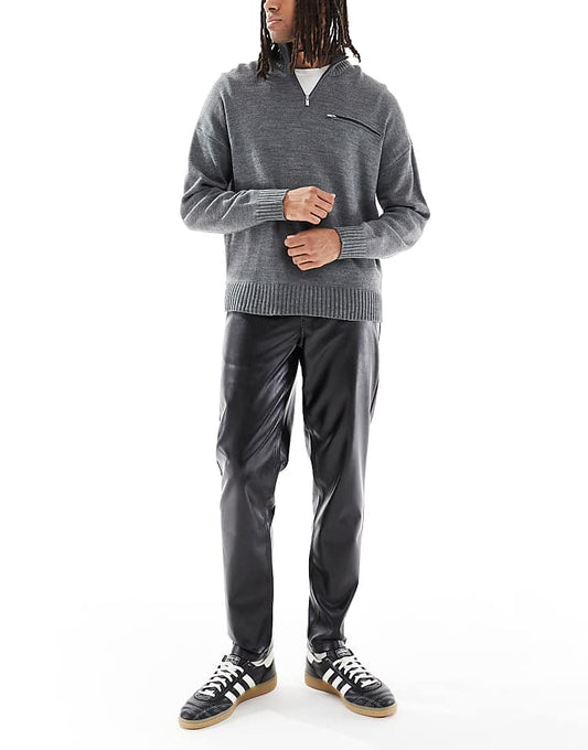 Sleek Black Faux Leather Tapered Pants for Effortless Style