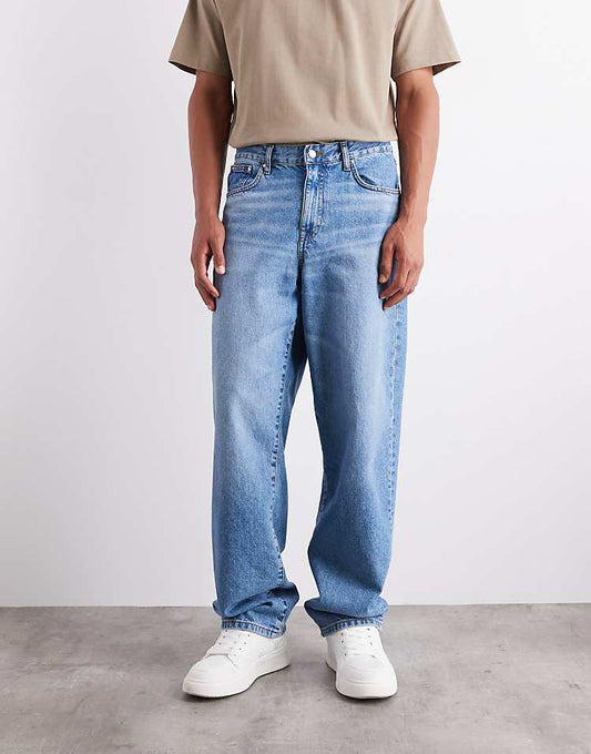 Trendy Mid Wash Blue Baggy Jeans for Effortless Casual Style