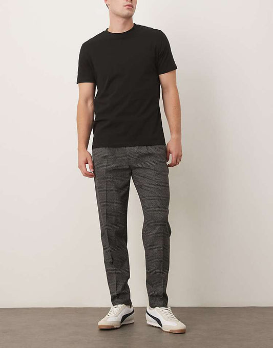 Elegant Black Plaid Tapered Dress Pants with Front Pleat for Sophisticated Styling