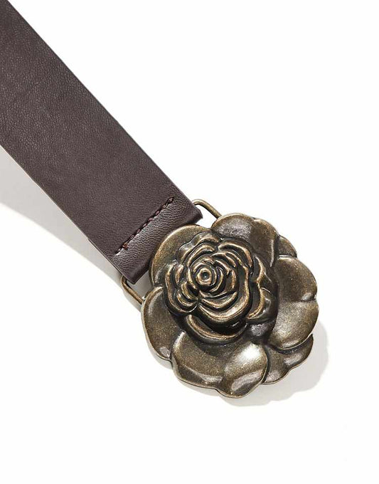 Stylish Chunky Rose Buckle Belt in Brown and Bronze for Effortless Elegance