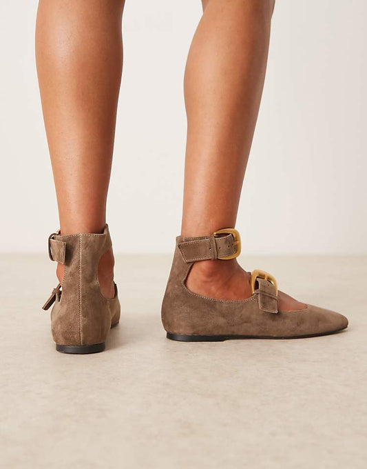 Stylish Brown Suede Oversized Buckle Mary Jane Ballet Flats for Effortless Elegance