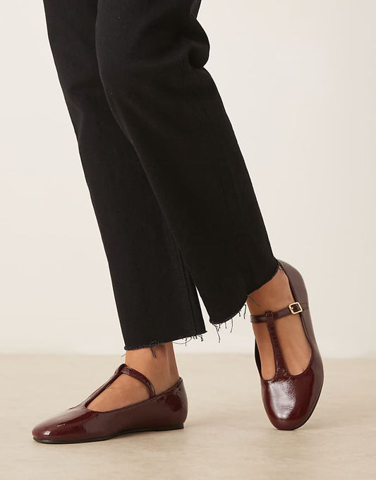 Chic Burgundy Patent Mary Jane Ballet Flats for Effortless Style