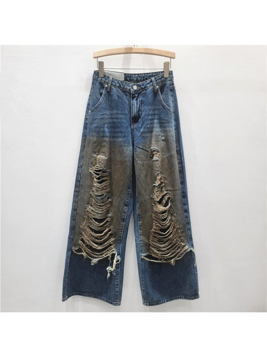 Stylish High-Waisted Distressed Denim Jeans for Effortless Chic Style